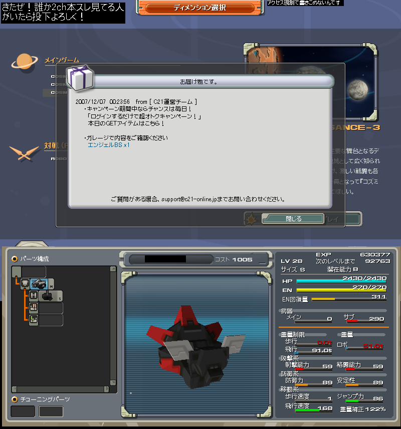 | wwwps4jp7558.png | wikiのカスタム機体倉庫へお願いします | 136KB | 07/12/23(Sun),22:46:35 | image/x-png | ScreenShot_20071223_2245_33_406.png |