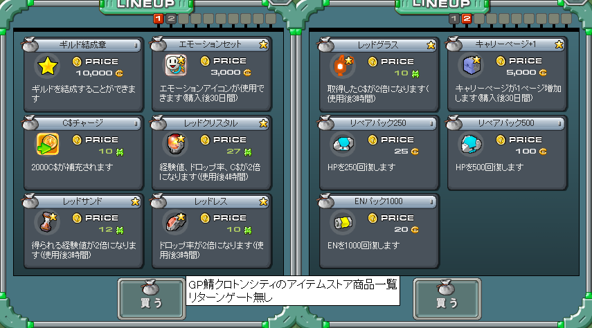 | wwwps4jp7470.png | 質問スレ>>136用GP鯖にリタゲ無し | 68KB | 07/12/16(Sun),13:25:48 | image/x-png | GP鯖クロトンシティアイテムストア.png |